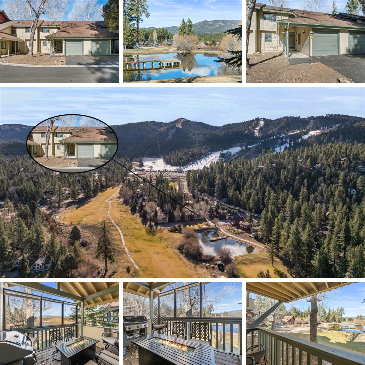 Stylishly updated townhome in Bear Meadows, ideally positioned overlooking the pond on the 8th hole of Bear Mountain Golf Course, with ski slope views visible from the kitchen and hallway windows. Recent upgrades include wood-grain tile flooring, custom lighting, a remodeled kitchen with granite countertops and stainless steel appliances, and updated bathrooms.