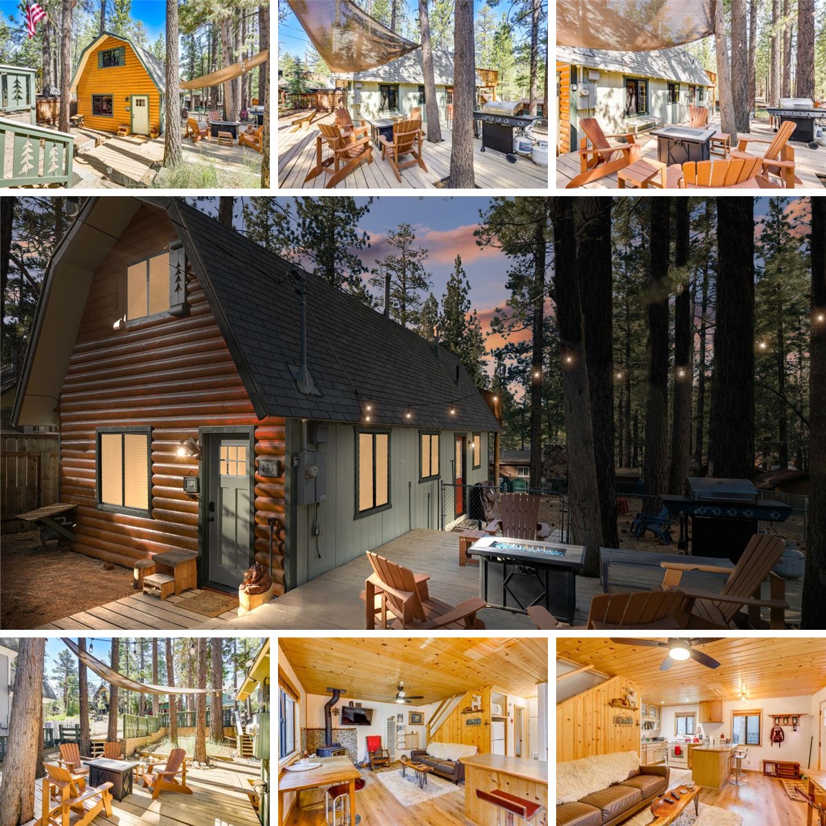 Such a sweet mountain setting! This beautiful log sided, remodeled, turn-key, gambrel offers 3 bedrooms and 1 bath and is situated among the trees in a great location of Big Bear City, just minutes from the lake, ski slopes, and shopping! Fantastic open floorplan with lots of log trim and that cozy mountain feel! The living room offers T&G ceilings and a beautiful wood burning stove to cozy up to on those chilly mountain evenings. The kitchen is open to the living room, great for entertaining, and offers new stainless-steel appliances! One bedroom is located on the main level next to a beautifully remodeled bathroom, and upstairs you will find another bedroom with a slider leading to a large deck, and a third loft style bedroom. Relax and enjoy the fresh air, sunshine, and peace on your expansive decking in the side yard under strung lights in the trees. Large lot allows for lots of room for activities and fun! Plenty of parking with two parking pads. Would be a great escape, rental, or full-time home! Comes fully furnished down to the linens! Just bring your toothbrush! Come enjoy all that beautiful Big Bear has to offer!