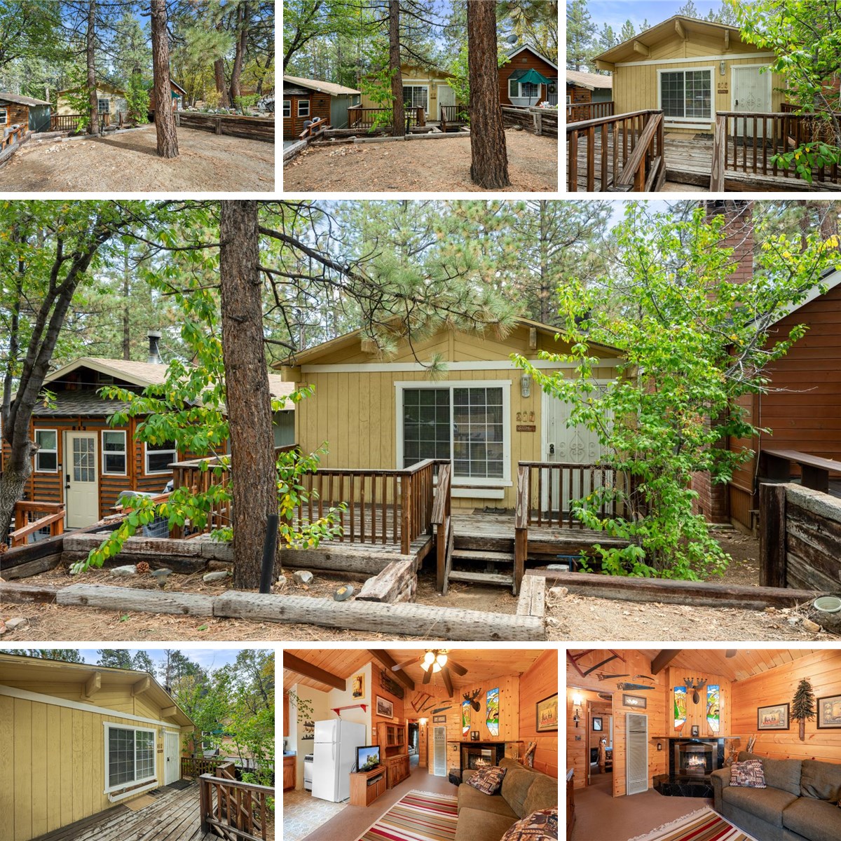 Adorable mountain cabin located just doors from the national forest and hiking trails. Open floor plan with T&G walls and open beam vaulted ceilings. This home offers a great floor plan with 2 bedrooms, and 1 full bath. Each bedroom has its own back door leading to a two-tiered deck and fenced back yard. Cozy up to the fireplace adorned with beautiful stained-glass inlayed lights above the mantel! Very unique and beautiful lit up with a fire going! Enjoy the fresh air and sunshine on both front and back decks. Comes furnished and ready to enjoy! Such a sweet little spot to get away from the chaos of everyday life! With a general store and restaurant/bar at the bottom of the street, you are sure to love this convenient location! And it's only minutes from the ski slopes, lake, and shopping too! Don't miss it!